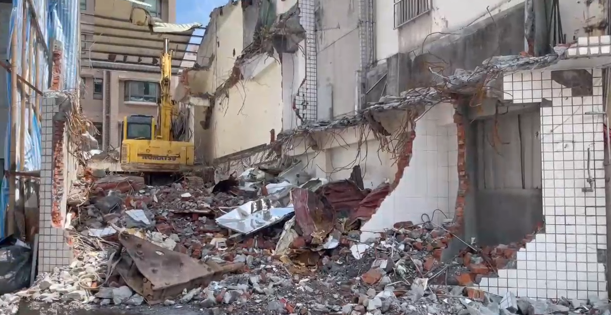 新北蘆洲光華路上一處民宅正在進行拆除作業,鷹架卻突然倒塌。(圖/東森新聞)
