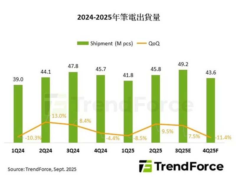 TrendForce:預估2025年全球筆電出貨年增2.2% 東南亞產能持續擴張