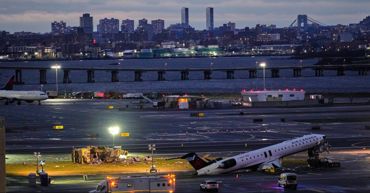 美國紐約拉瓜迪亞機場在當地時間22日晚間發生重大事故。一架降落機場的加航快捷客機滑行時,撞上跑道上的一輛消防車,機頭幾乎全毀,正副機師不幸罹難。