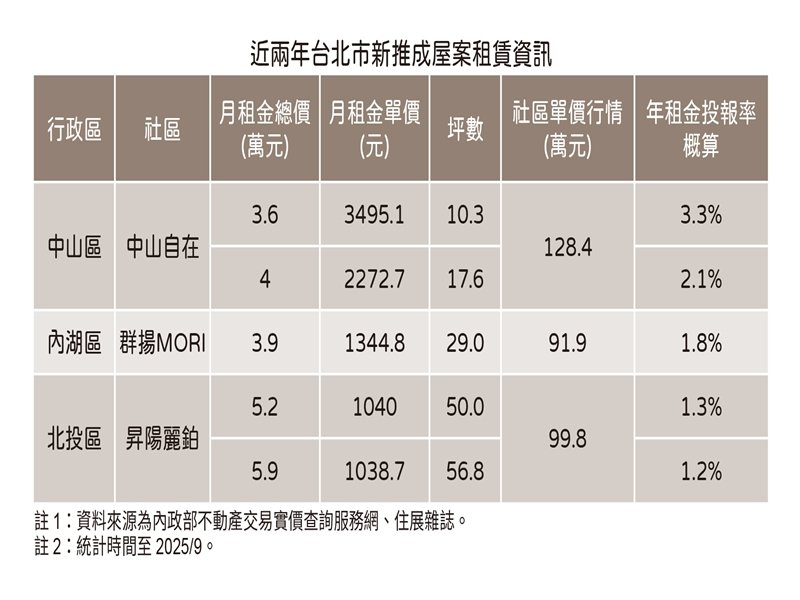 近期租賃條例政策議題如火如荼,住展雜誌企研室總監暨發言人陳炳辰表示,租屋市場的不透明讓政府不論在補貼或規範上的效益都大打折扣,以先建後售的新成屋來說,貸款環境不友善下,若為投資類買盤勢必以即刻租賃為上,但從實價揭露的台北市在近兩年推出的新成屋出租資訊,共僅三社區有實登紀錄,而事實上台北市不乏主力規劃