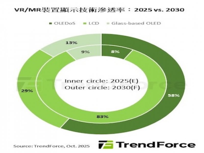 TrendForce :供應鏈與應用端雙重突破 預估2030年OLEDoS於VR/MR滲透率將快速成長至58%